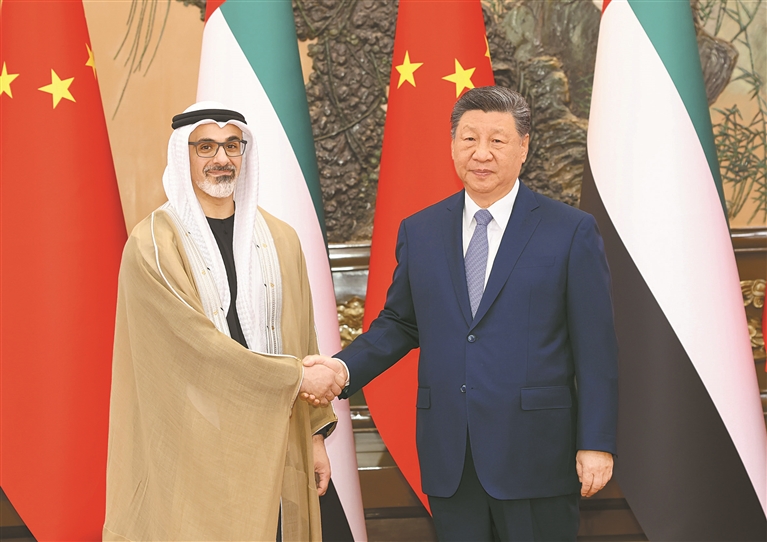 新华社北京4月14日电(记者温馨) 4月14日上午,国家主席习近平在北京人民大会堂会见来华访问的阿联酋阿布扎比王储哈立德。 习近平指出,阿联酋是中国的全面战略伙伴,中方始终高度重视发展同阿联酋的关系。在双方共同努力下,中阿关系保持健康稳定发展,政治互信不断加深,务实合作稳步推进,人文交流丰富多彩。巩固和提升中阿关系是双方的坚定共识,符合两国人民期待。中方愿同阿方携手同行,打造更加稳固坚韧、富有活力的中阿全面战略伙伴关系。双方要继续在涉及彼此核心利益和重大关切问题上相互支持,保持高层交往,筑牢战略互信。加强发展战略对接,在能源、投资、贸易、科技等领域深挖潜力,深化互利合作。推动教育、民航、旅游等合作取得更大进展,密切人文交流,夯实民意基础。在联合国、金砖国家等多边平台增进协调合作,以中阿关系的稳定性应对国际和地区形势的不确定性,共同推动构建人类命运共同体。 双方围绕当前中东和海湾地区形势交换了意见。习近平强调了中方劝和促谈的原则立场,重申将继续为此发挥建设性作用。 习近平就维护和促进中东和平稳定提出4点主张:一是坚持和平共处原则。中东海湾国家唇齿相依,是搬不走的邻居。要支持中东海湾国家改善关系,推动构建共同、综合、合作、可持续的中东和海湾地区安全架构,筑牢和平共处的根基。二是坚持国家主权原则。主权是各国特别是广大发展中国家安身立命的依托,不容侵犯。中东海湾国家主权、安全和领土完整应当得到切实尊重,各国人员、设施、机构安全应当得到切实维护。三是坚持国际法治原则。维护国际法治权威,不能“合则用、不合则弃”,不能让世界倒回丛林法则。要坚定维护以联合国为核心的国际体系、以国际法为基础的国际秩序、以联合国宪章宗旨和原则为基础的国际关系基本准则。四是坚持统筹发展和安全。安全是发展的前提,发展是安全的保障。各方都应该为中东海湾国家发展营造良好环境、注入正能量。中方愿同中东海湾国家分享中国式现代化机遇,厚植地区发展和安全土壤。 哈立德表示,阿中关系历史悠久、根基深厚,两国始终相互尊重、相互信任,有着广泛共同利益。阿方高度重视发展对华关系,愿同中方落实好两国元首达成的重要共识,深化各领域合作,为两国关系开辟更广阔前景,造福两国人民。阿方赞赏中国在国际事务中发挥负责任和建设性作用,为政治解决当前中东危机作出积极努力。阿方致力于同中方保持密切沟通协调,促进相关方面停火止战,尽快恢复地区和平稳定,维护国际航运安全,防止对全球经济和能源安全造成更大影响。阿方将切实保护在阿中国公民和机构安全。 王毅参加会见。