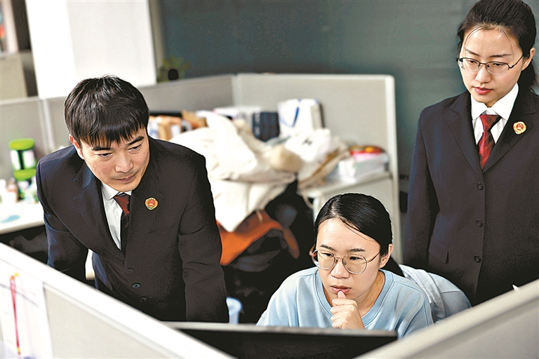 图①:针对办理的一起侵犯商业秘密案件,4月,辽宁省沈阳高新技术产业开发区检察院办案检察官来到被侵犯商业秘密的公司,进一步核实证据。 本报全媒体记者王玲 通讯员李美琪摄