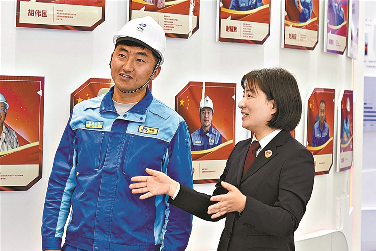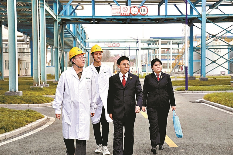 图②:近日,浙江省舟山市检察院干警走进中化舟山基地开展“送法进企”活动。检察干警立足石化企业创新发展需求,结合典型案例,围绕核心技术保护、专利侵权防范、商业秘密管理等法律风险点精准普法,助力企业锁上法治“安全锁”。 本报全媒体记者龚婵婵 通讯员陈洪娜摄