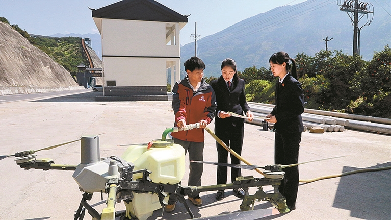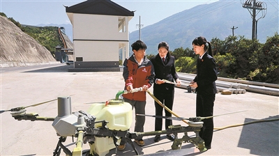 图④:4月13日,湖北省秭归县检察院干警在郭家坝镇向农用无人机飞手讲解知识产权相关法律,提示侵犯专利权、制售假冒设备零部件等行为可能构成刑事犯罪。本报通讯员余红梅摄